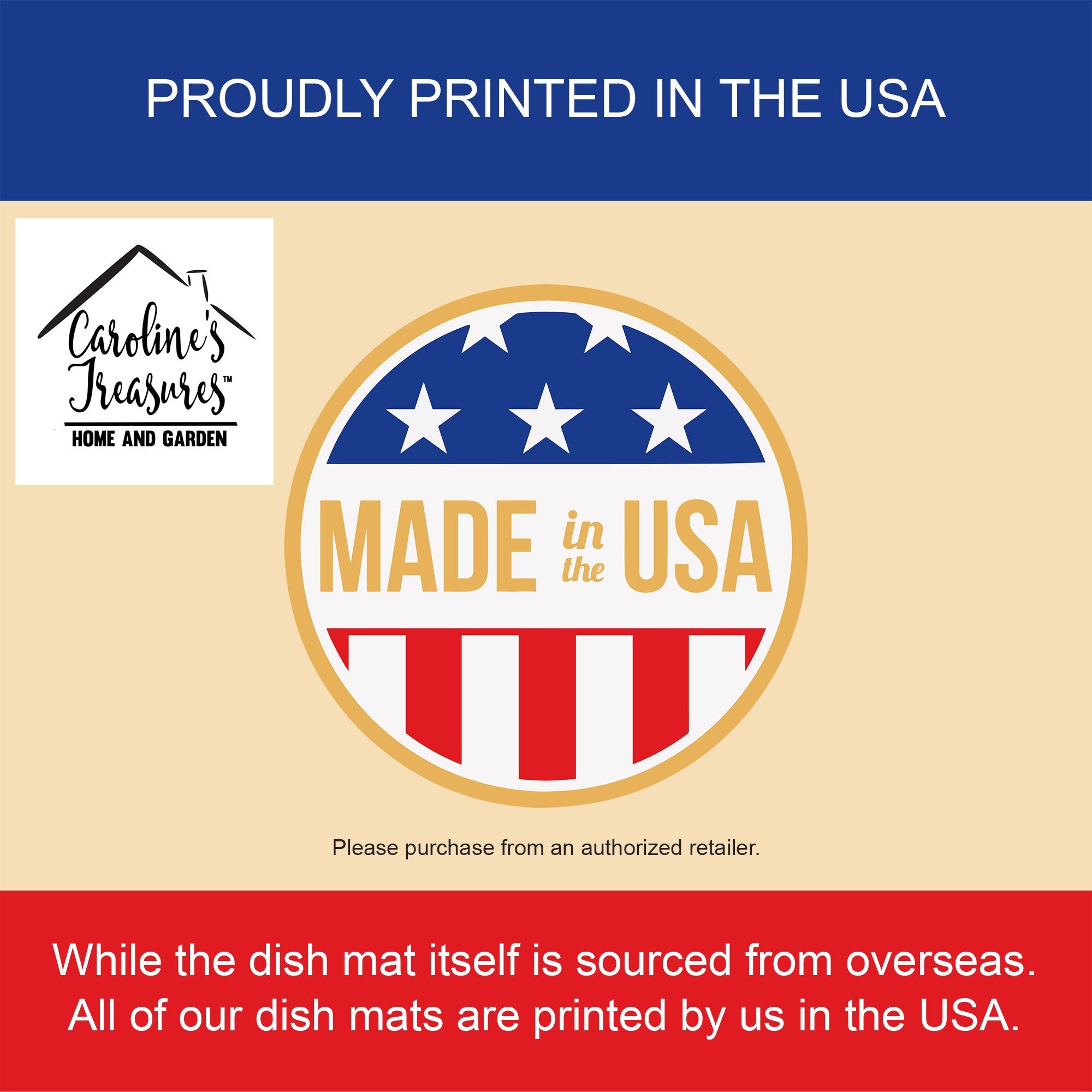 Dish Drying Mat featuring breed specific Corgi artwork. Say goodbye to messy countertops and soggy dish towels with our innovative dish drying mat. Our high-quality dish drying pad is designed to keep your countertops dry while offering a stylish and efficient solution. Whether you're air drying dishes, glasses, stemware, silverware, pots, pans, bottles, or even fruits and vegetables, our dish mat is the perfect choice. The 14 inches x 22 inches size fits most counters and dish drying racks, and the non-slip design ensures stability. Made with water-absorbent polyester and a polyurethane foam insert, our dish drying mat is not only functional but also durable. It's machine washable and printed in the USA for long-lasting use. The beautiful artwork adds flair to your kitchen decor, making it a perfect housewarming gift or present for any occasion. Upgrade your kitchen experience with our absorbent and versatile dish drying mat.